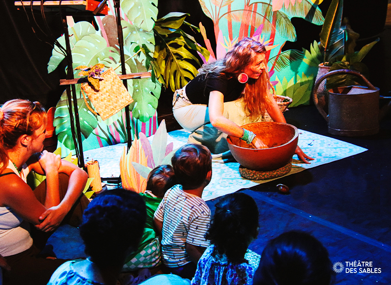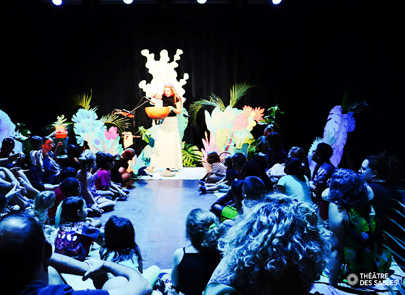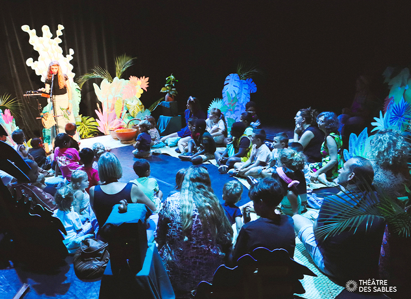 Soucieuse de programmer un moment accessible et poétique durant les vacances, Mylène Ip-Wo-Hing, présidente du Théâtre des Sables, a souhaité proposer aux familles un temps suspendu où l’art rencontre la tendresse. Dans une atmosphère apaisante, les enfants ont été invités à explorer un univers sonore et végétal propice à l’émerveillement.