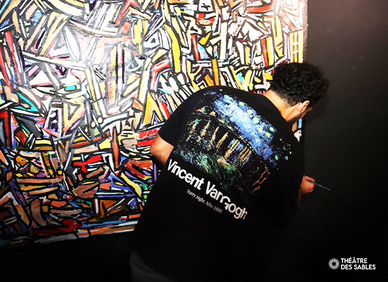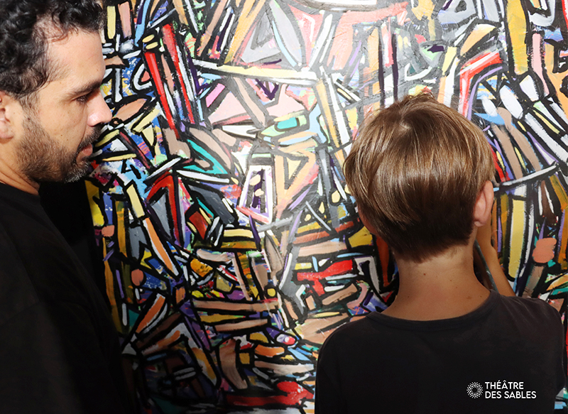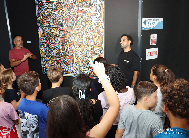 Dans le cadre de l’exposition « ADN Chromatique » de Lukas Works, le Théâtre des Sables a accueilli des collégiens pour une immersion au cœur de l’art contemporain. Cette action de médiation culturelle, centrée sur la transmission, l’éducation artistique et la créativité, illustre l’engagement du théâtre envers les jeunes générations.