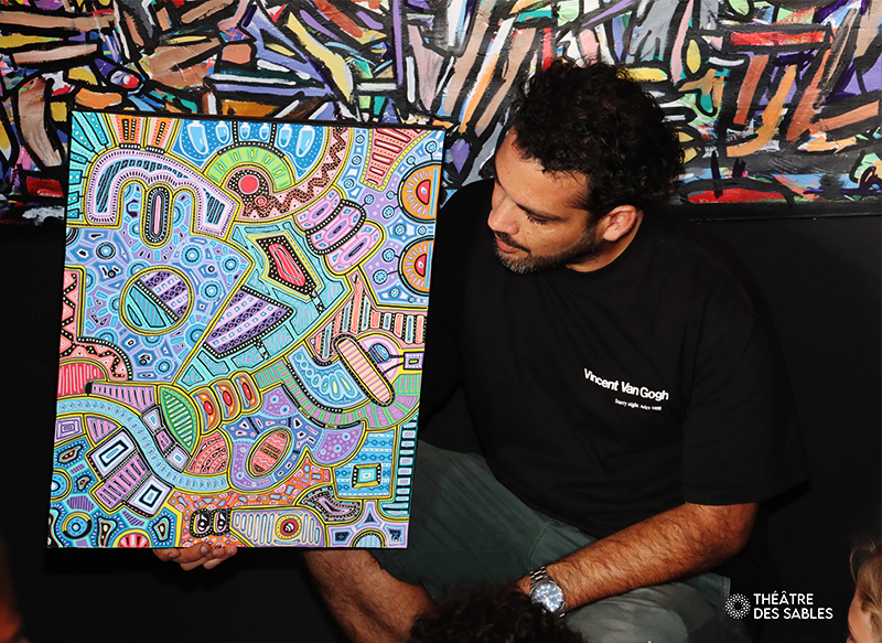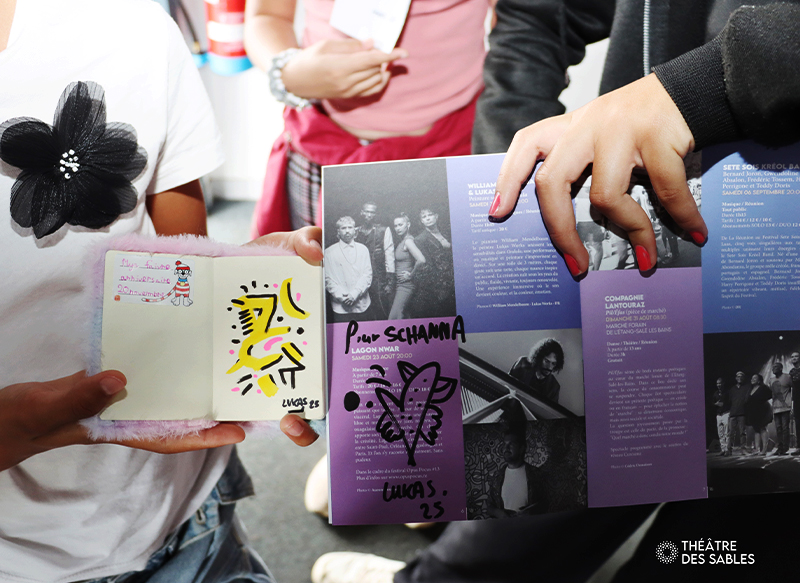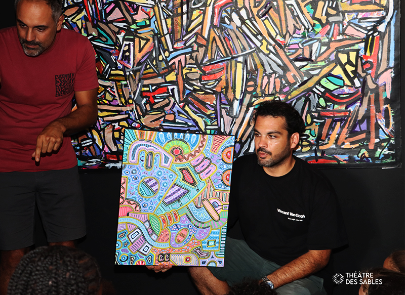 Mylène Ip-Wo-Hing, présidente du Théâtre des Sables, adresse ses remerciements à Lukas Works, artiste flamboyant, ainsi qu’aux accompagnateurs et aux élèves pour ce beau moment de partage autour de la création. Une rencontre artistique qui restera sans doute gravée dans leurs souvenirs.